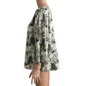 World Market Blouse Womens Small Medium Green Floral Peacocks Print Pullover