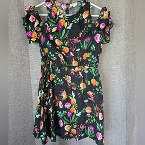 World Market Cut Out Shoulder Mini Dress Ruffles Floral Size S/M