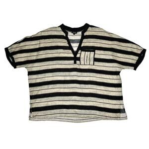 Worth Striped Dolman Sleeve Relaxed Fit Top Black/Cream Linen size Large