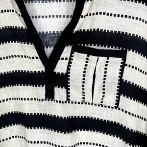 Worth Striped Dolman Sleeve Relaxed Fit Tunic Top Black/Tan Linen size Large