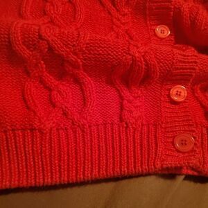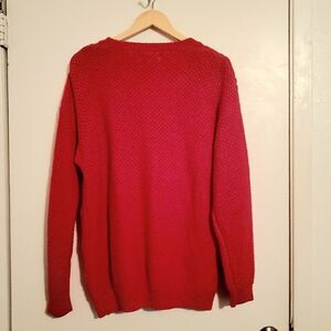 Vintage holiday red, deep V-neckline, button closure, long sleeve cable knit sweater. Pre-owned in great condition. Please refer to pictures for best description and condition verification.