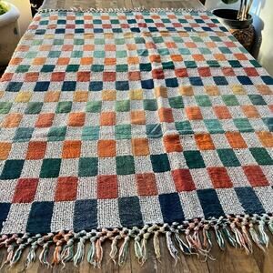 Woven Throw Blanket Checkered Multicolor Fringe 58" x 46.5"