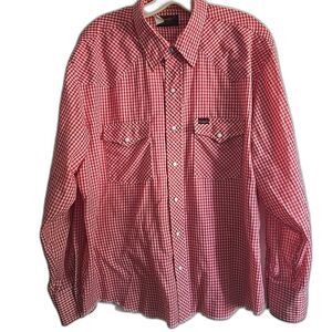 Wrangler Men's VTG Long Sleeve Western Pearl Snap Shirt Red & White Plaid L