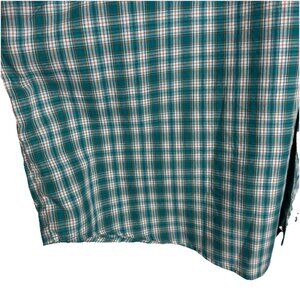 The Wrangler Western Pearl Snap Teal Plaid 3XL Short Sleeve Button Down is a classic and versatile piece perfect for casual or workwear occasions. Made from a comfortable cotton blend material, this relaxed fit shirt features a collared neckline with a button-down style. The green plaid pattern and snap closure add a touch of Western cowboy flair, making it an ideal choice for summer, fall, and spring seasons. With easy care instructions and convenient pockets, this shirt from the Wrangler Wrancher product line is a timeless addition to any man's wardrobe.
