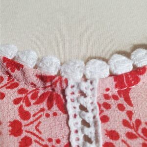 Flirty,flowey tank top in a white and red pasley print. Pre-owned in good condition. Please refer to pictures for best description and condition verification.