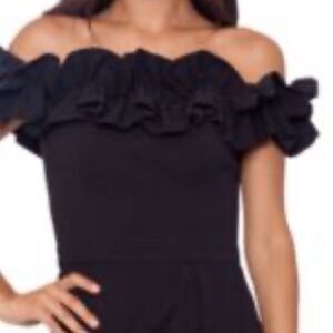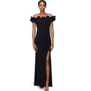 XSCAPE 3856X Off the Shoulder Ruffle Crepe Trumpet Gown black NWT $258