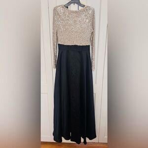 NWT XSCAPE DIXIE V-NECK LONG SLEEVE SEQUIN TOP WAISTBAND WITH BOW GOWN