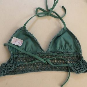 Xhilaration Green crochet size XS adjustable halter / swim top