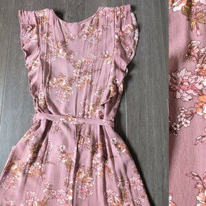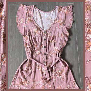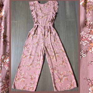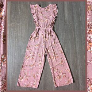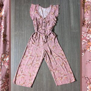 Xhilaration, Mauve Floral Cropped Jumpsuit with Ruffles, Vneck, Size S