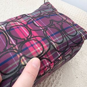 Grab this Y2K Coach Pink Signature Tartan Top Handle Pouch Purse today!