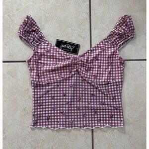 Y2K Just Polly NY Gingham Pink + White Floral Tank Top Women’s Large