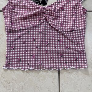 Just Polly New York cute pink and white gingham floral tank with a little pink bow. Wide straps, stretchy and breathable. Light lining on the chest covering. New with tag!