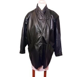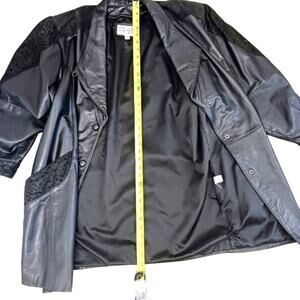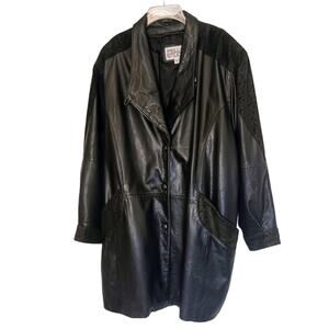 Y2K Leather Coat TEXTURED DETAIL Size L BLACK Patterned Accents Oversized Snaps