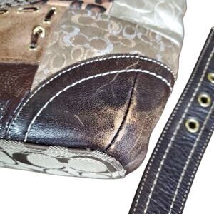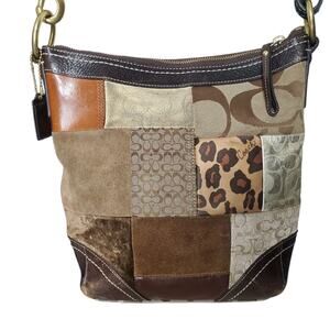 Y2k Coach F12840 Patchwork Signature Crossbody Canvas Leather Hobo Bag