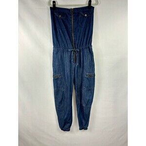 YFB Young Fabulous & Broke Strapless Denim Jumpsuit - Size 4 - Drawstring Waist & Cargo Style