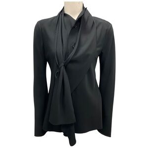 Yohji Yamamoto Noir Black Draped Asymmetric Silk Blouse