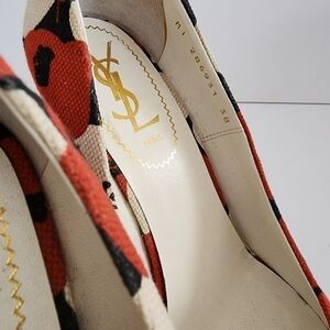 YSL Yves Saint Laurent Floral Canvas Platform Wedge Size 38