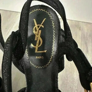 YSL Saint Laurent Women’s Tribute Sandal Black Sparkling Size 39