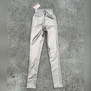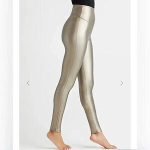 YUMMIE BRONZE FAUX LEATHER SHAPING LEGGING WITH SIDE ZIP NEW WITH TAG