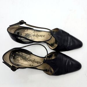 YVES SAINT LAURENT VINTAGE LEATHER T-STRAP ALMOND TOE MARY JANE SHOES BLACK 7.5
