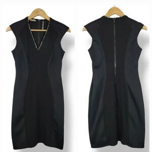 Yoana Baraschi Ponte Knit Vneckline Cap Sleeve Sheath Dress in Black Size Small