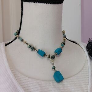 You & I Faux Turquoise Y Drop Statement Necklace