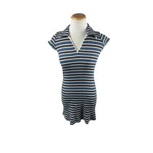 Younique Y2K Ribbed Collared Mini Sweater Dress Small Blue Black Grunge
