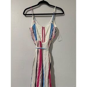 Yumi Kim St. Lucia sideline jumpsuit size S striped tie for waist zipper on back adjustable strap has pockets no stains the one tie loop for waist is rip bit easily fixable