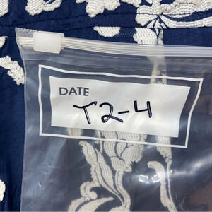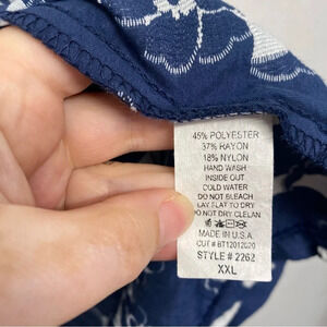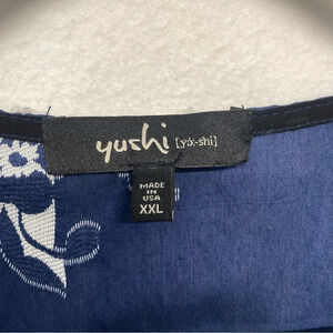 Yushi Navy Floral Pearl Button Front Textured Jacket XXL Lagenlook Art to Wear