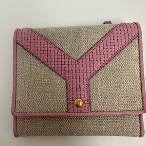 Yves Saint Laurent Pink and Cream Woven Clutch