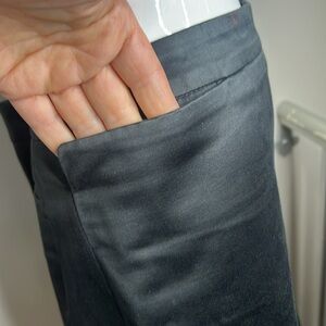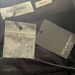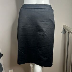 This is a beautiful Yves Saint Laurent Sz 42 Black 100% Cotton Back Zip Skirt. Has not been worn. Has been hanging in a closet for a few years. Back zipper. Back pockets two front pockets. Full length 20.5”