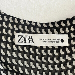 ZARA Black and Cream Patterned Ruched Mini Dress Size Medium