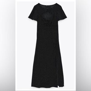ZARA Black and White Cut-Out Polka Dots Midi Dress