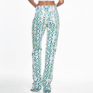 ZARA CHECK PRINT HIGH RISE STRAIGHT FIT JEANS