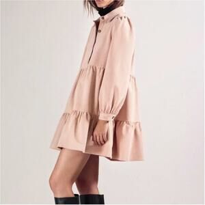 ZARA Corduroy Tiered Long Sleeve Mini Dress in Pink XS