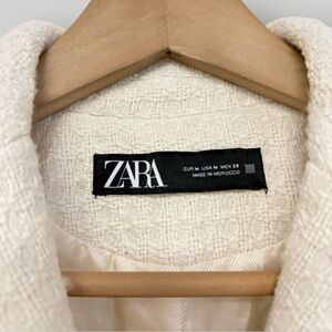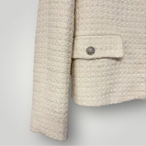 ZARA Cream / white blazer jacket Rhinestones Classy Simple Tweed Sz M