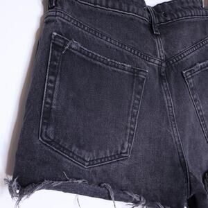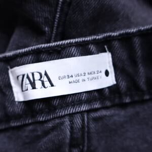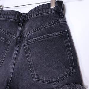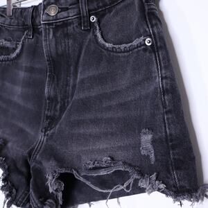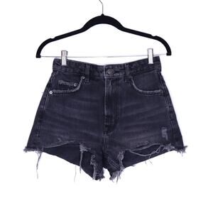 ZARA High Rise Cut Off Shorts Black Stone Washed Distressed Denim Women's 2