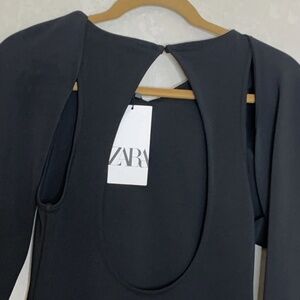 This ZARA dress is a stylish addition to any wardrobe. Featuring a knotted overlay and back slit, this black dress is perfect for any occasion. The high neck and pullover closure add a touch of elegance, while the long sleeves and short dress length make it versatile for both work and play. Made of polyester with Elastano fabric type, the dress is comfortable and stylish. Whether you're dressing up for a party or dressing down for a casual day out, this dress is sure to impress.