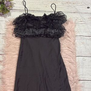 ZARA Organza Ruffle Slip Dress Polka Dot Midi Maxi Black Bloggers Fav black. This dress is in great used condition