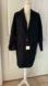 Extremely oversized. Dropped shoulders, button closure, front pockets, unlined. Viscose, cotton, linen. Dark navy color