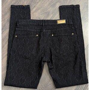 ZARA Women's Black Denim Skinny Jeans Lace Flower Pattern Size 4 with 28" Inseam