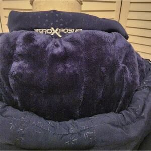 ZERO EXPOSUR BLUE WITH PRINT BUCKLE WINTER JACKET WITH HOOD SIZE MED