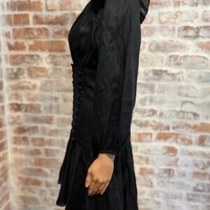 A poetic fusion of ethereal romance and structured allure, this mini dress sculpts the silhouette with a delicate linen corset bodice and flowing skirt. The intricate lace-up detailing and whisper-thin straps evoke a modern-day fairy tale—equal parts innocence and intention. B+ Very Good Condition
