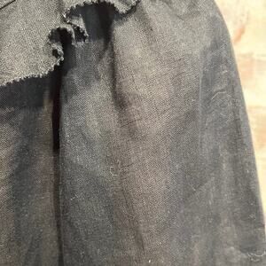 * Exterior: It's in very good condition. The linen is vibrant and beautiful with gentle loose threads, small white spots and pilling. It could possibly be cleaned if desired after purchase although it is wearable without.