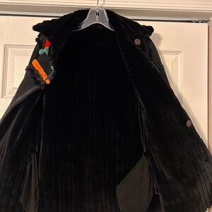 ZUKI Sz M/L Black Sheared Beaver w/Suede & Abstract Design Reversible Coat Jkt