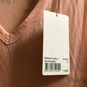 Blush color, v-neck, cut short sleeves, silver skull in back