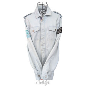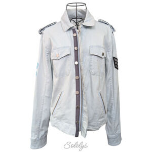 Zadig & Voltaire Kavy Rae Light Blue Cotton Military Utility Jacket Patch Medium