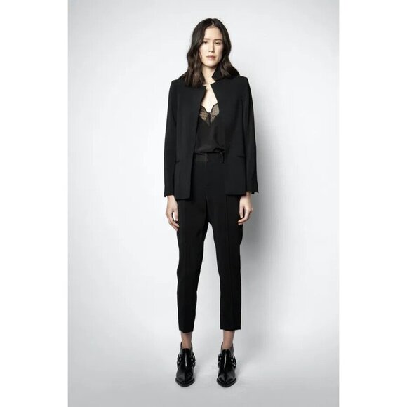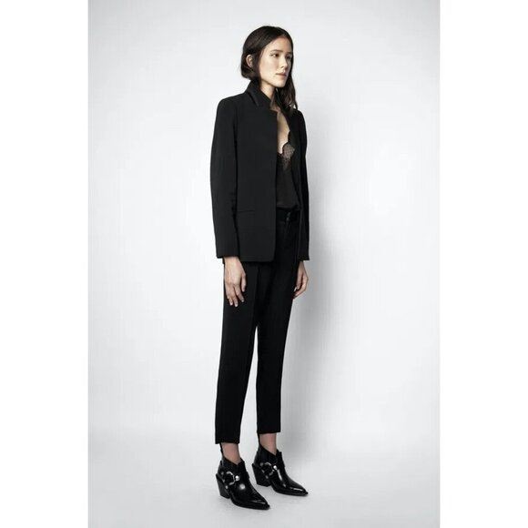 Zadig & Voltaire Size M Volly Crepe Blazer Open Front Black Longline Slim Cut