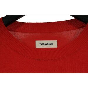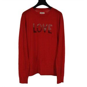 Zadig & Voltaire Womens Love Sweater Medium Red Wool Pullover Logo Sleeve