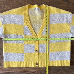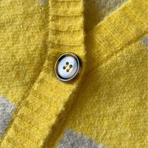 Zara Alpaca Wool Blend Boxy Button Front V Neck Cardigan Sweater Yellow Checked